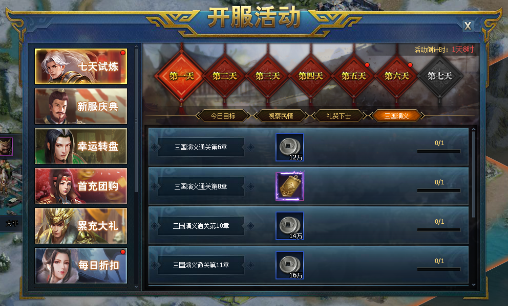 1) 活动期间,本服首充人数达到指定数量,所有主公均可领取奖励。